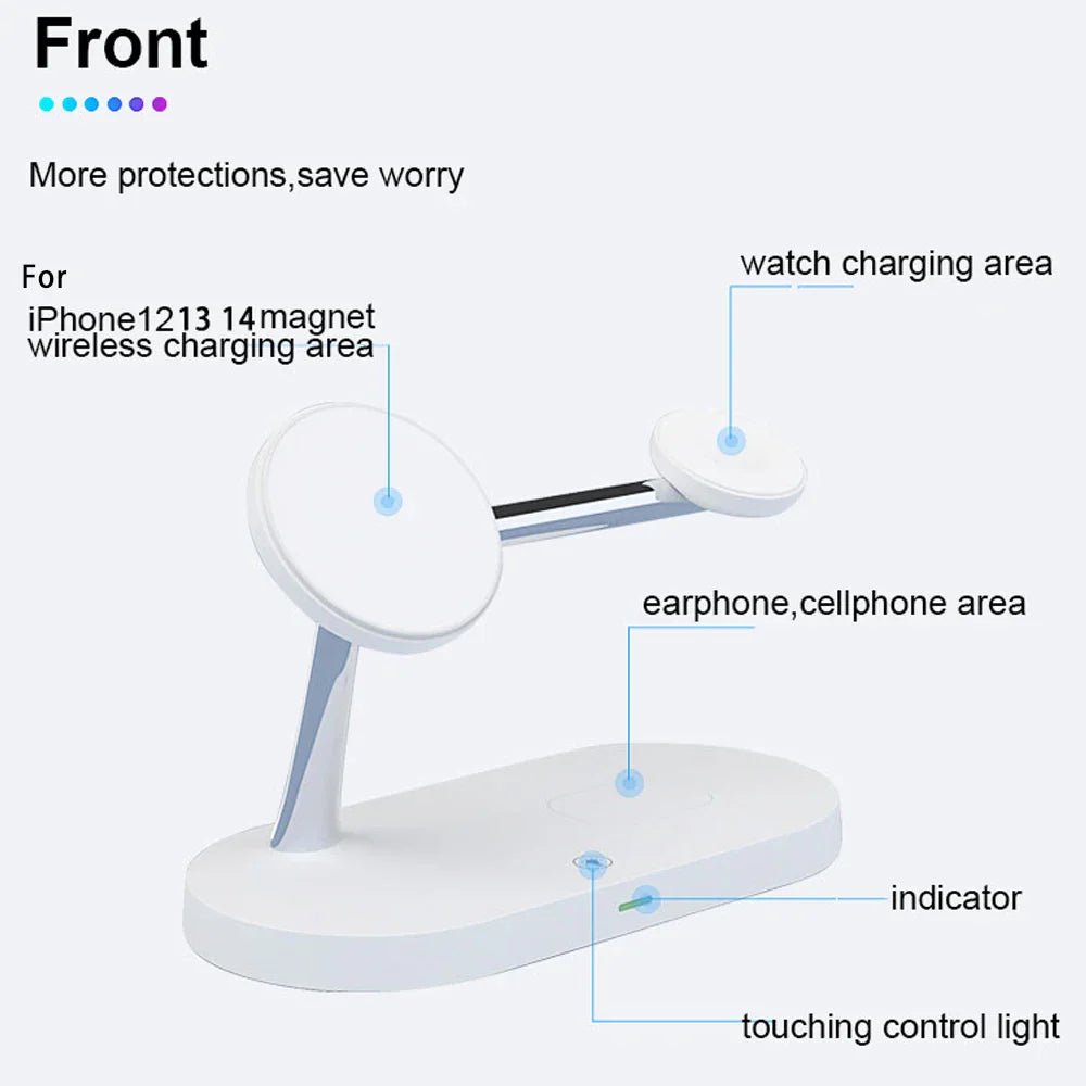 Stacja ładująca 3w1 została zaprojektowana z myślą o minimalistycznym stylu i funkcjonalności: