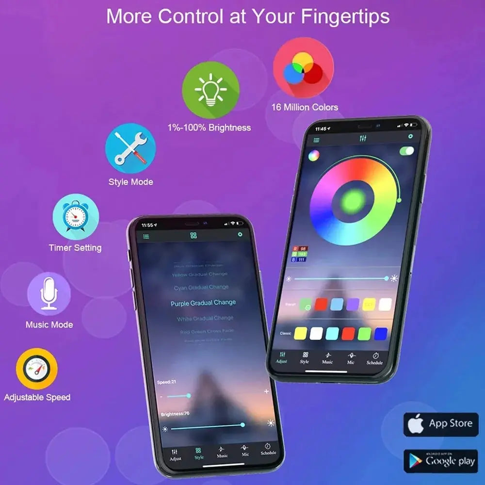 Stwórz niepowtarzalną atmosferę w każdym pomieszczeniu dzięki paskowi LED RGB 5050 SMD. Ten wszechstronny pasek LED oferuje pełną kontrolę nad kolorami przez Bluetooth, łatwe zasilanie USB i wygodny montaż samoprzylepny, idealny do telewizora, biurka czy półek.